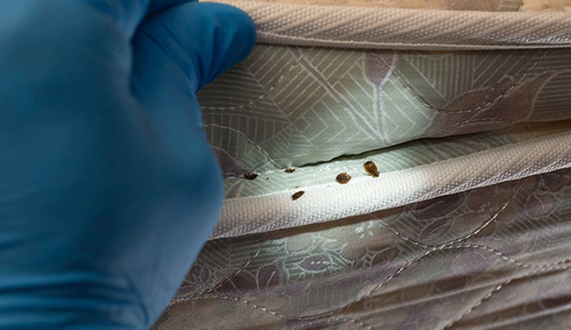 - Dark stains or droppings on mattresses