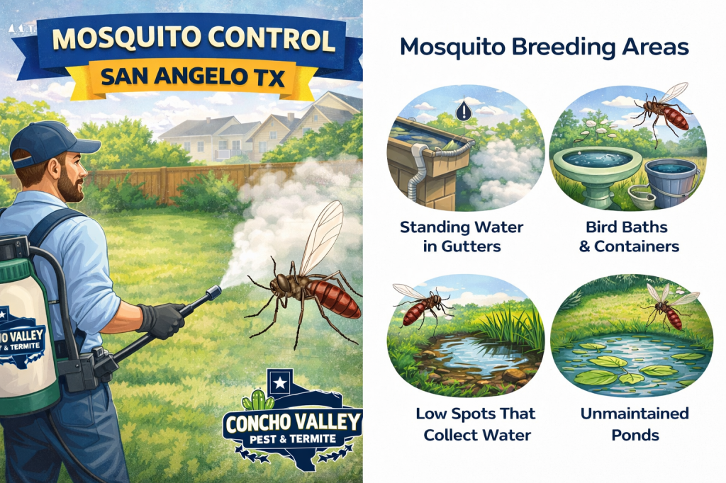 Mosquitoes are more than just a nuisance — they can carry diseases and reproduce quickly in standing water around your home. In San Angelo and across the Concho Valley, mosquito activity increases during warmer months, making regular treatment essential for keeping your property comfortable and protected.